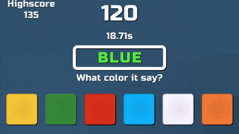 Choose the correct color depending on whether you have to choose the color that the word is or the color that it says. Your mind can play against you, don't be your own enemy.